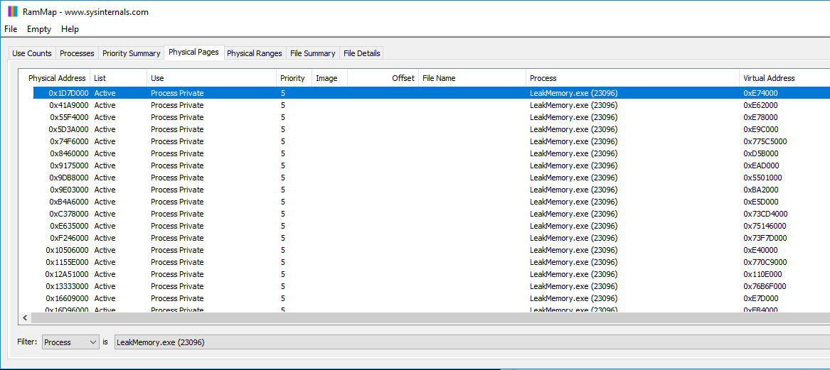 Back to our issue at hand, we have to start with some basic facts about how programs access memory. Specifically, in our small C# example, the resulting process is never allocating chunks of physical memory directly. Windows itself doesn’t hand out to the process any address for physical RAM. Instead, the concept of virtual memory is used.