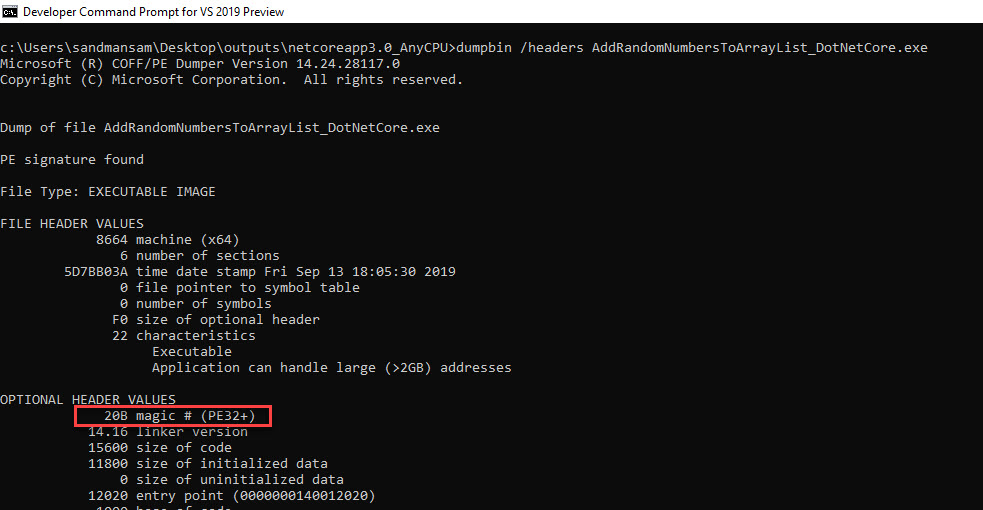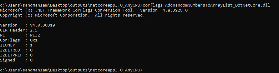 This actually explains the error message in figure 1 – the whole .NET Core application is actually within the .dll assembly; the .exe is just a native host used to get the assembly’s code running, nothing more.