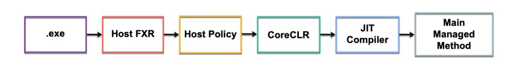 So we run our console application by using either of the methods above. What would we expect to happen next? The thing is that at this point all we have is a native application that started executing. There’s nothing currently that can understand – let alone run – managed code. The machine this native code is running against expects machine code, not IL (Intermediate Language). And managed code cannot be run out of thin air – it needs the .NET Core Runtime (CoreCLR) to run it. It’s in this context that our native app simply serves as a host for where the managed code will eventually execute.