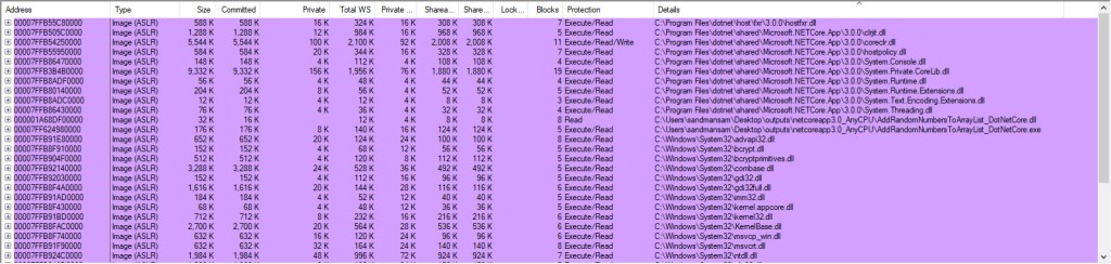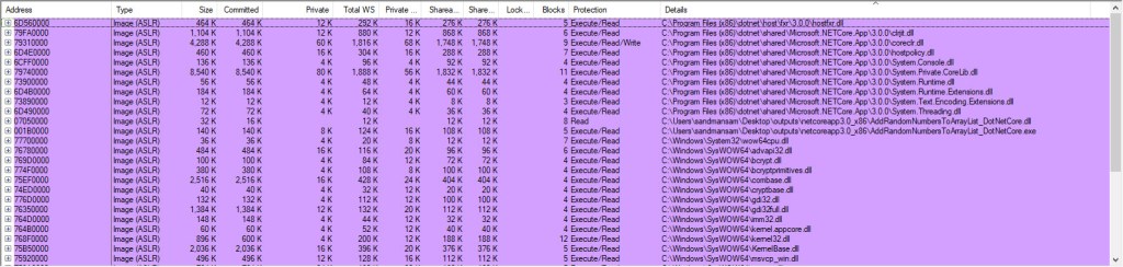 And if you refer back to the figure showing which images were loaded within the process virtual address space (figure 19 (32-bit) or 20 (64-bit)), you’ll notice that aside the libraries used by the .NET Core to get the runtime running (host FXR, host policy and CoreCLR) and the JITer, the rest of .NET Core images match the list of assemblies we’ve printed as loaded in our app.