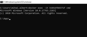 C:\Users\mihai.albert>docker exec -it 6e5a8d8a1e87 bashroot@6e5a8d8a1e87:/App# cat /etc/os-release